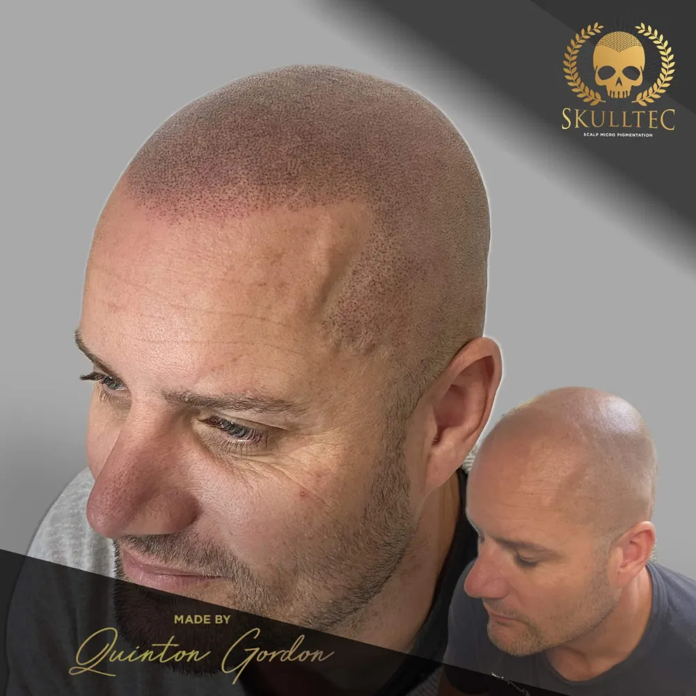 The life changing experience of scalp micropigmentation led Barrie pursue training, becoming a practitioner first. Soon after, Quinton followed suit and together the duo established Skulltec. Now with two successful locations, Skulltec is Southwest England’s most trusted scalp micropigmentation clinic, with a rapidly growing client base.